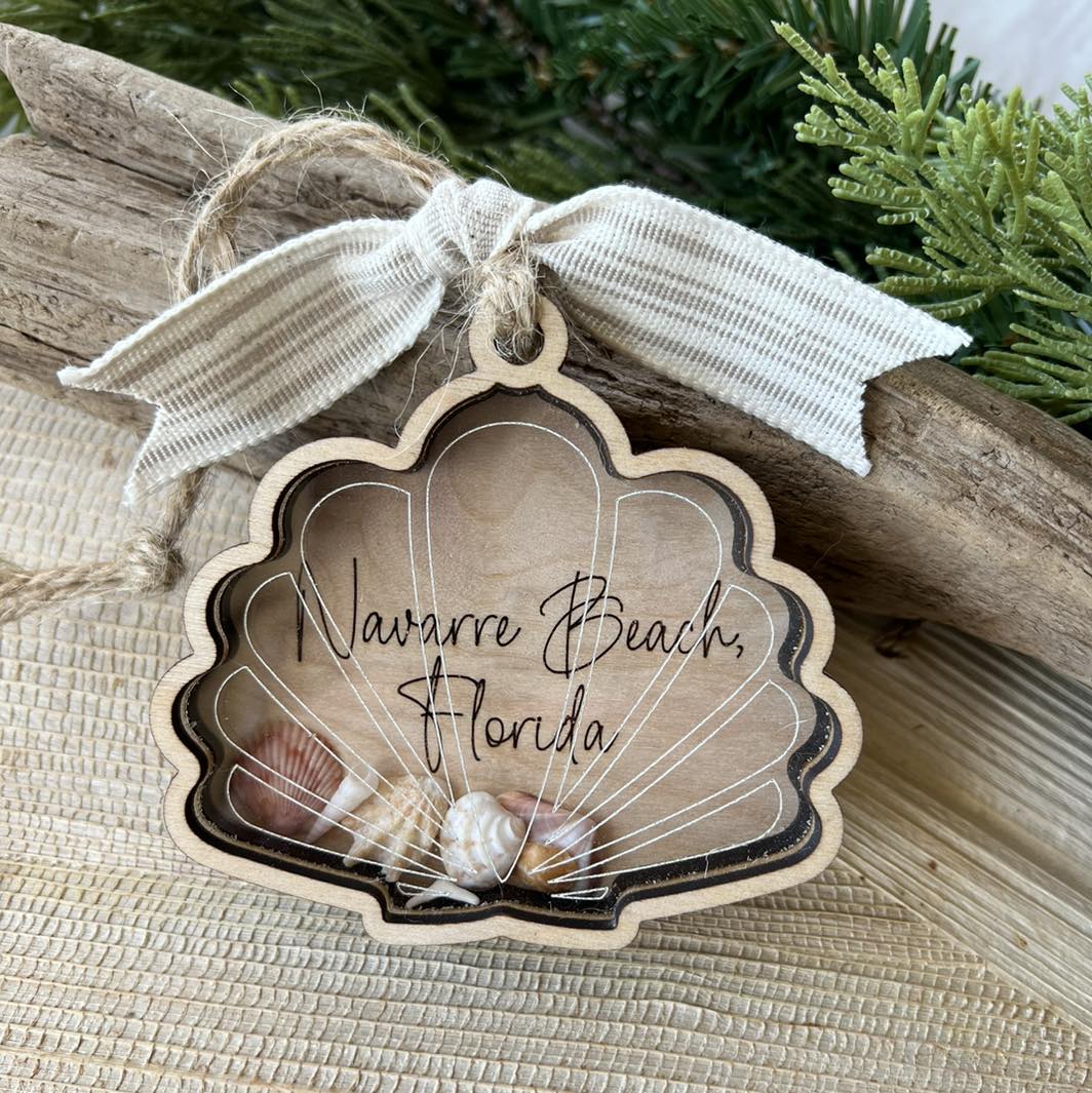 Navarre Beach, FL Scallop Shaker Shell Ornament