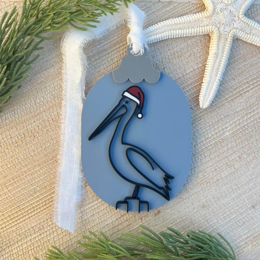 Made from acrylic this Pelican ornament is sure to add a coastal feel to any Christmas tree.