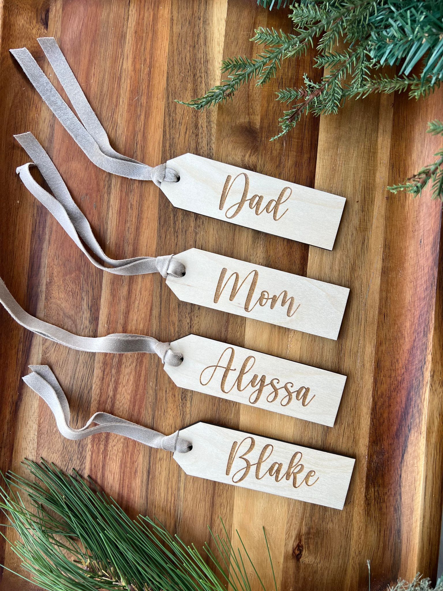 Laser cut from 1/8" thick birch wood with a name engraved on it.