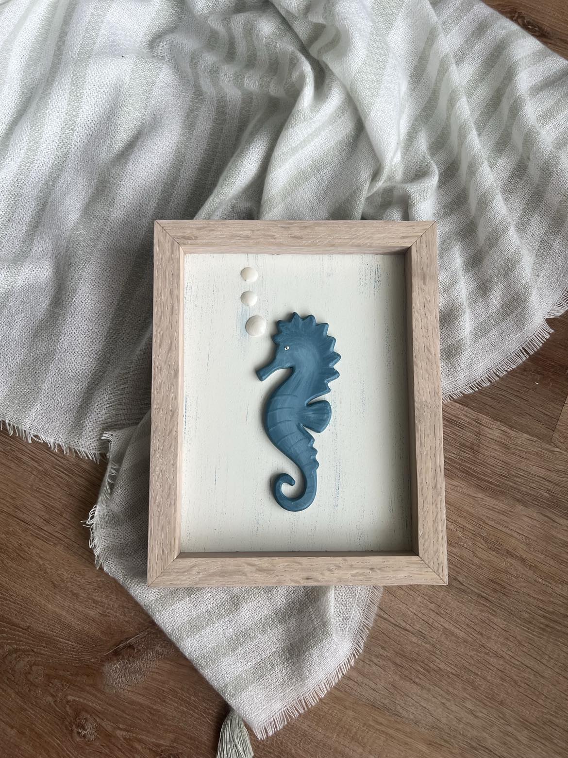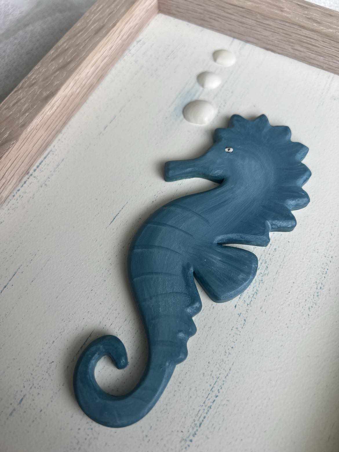 Seahorse is cut from 1/4" thick mdf and hand painted.